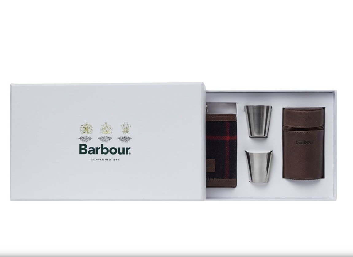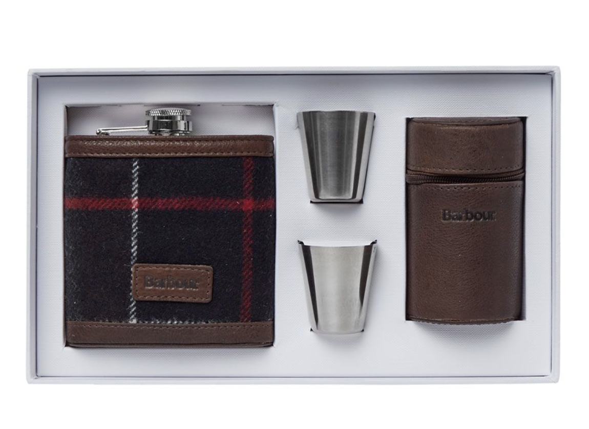 Coffret cadeau flasque et tasses Barbour en tartan. Apportez votre boisson avec vous grâce à cet ensemble de flasques et tasses astucieux de l'icône britannique Barbour.