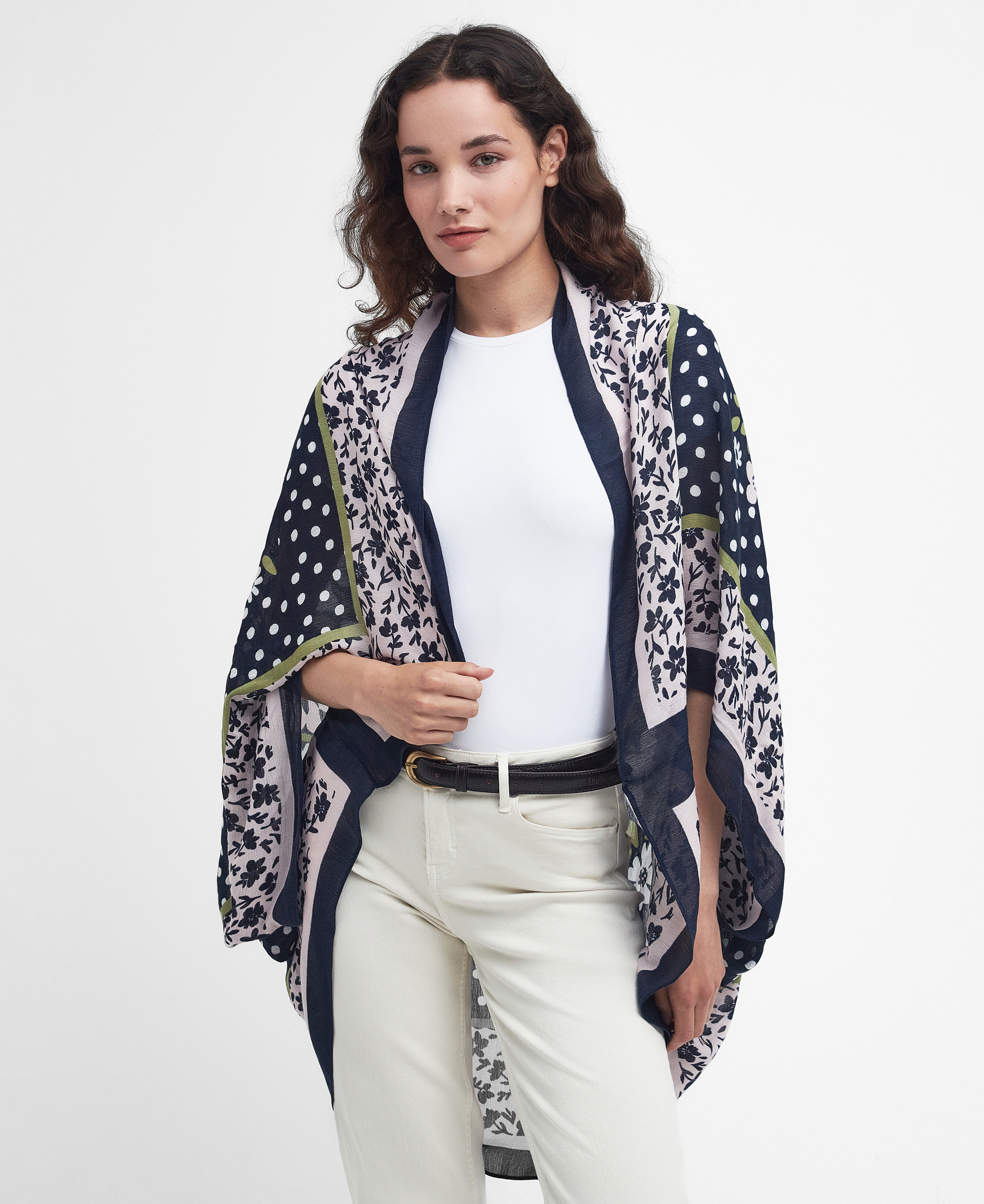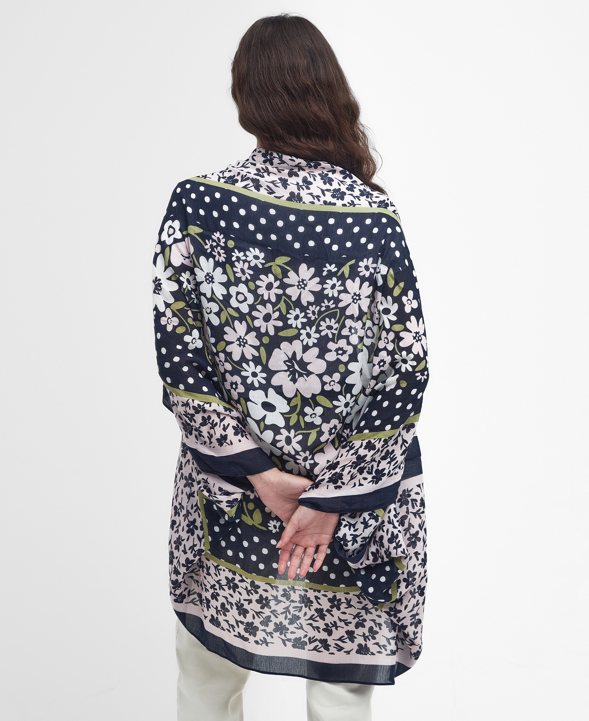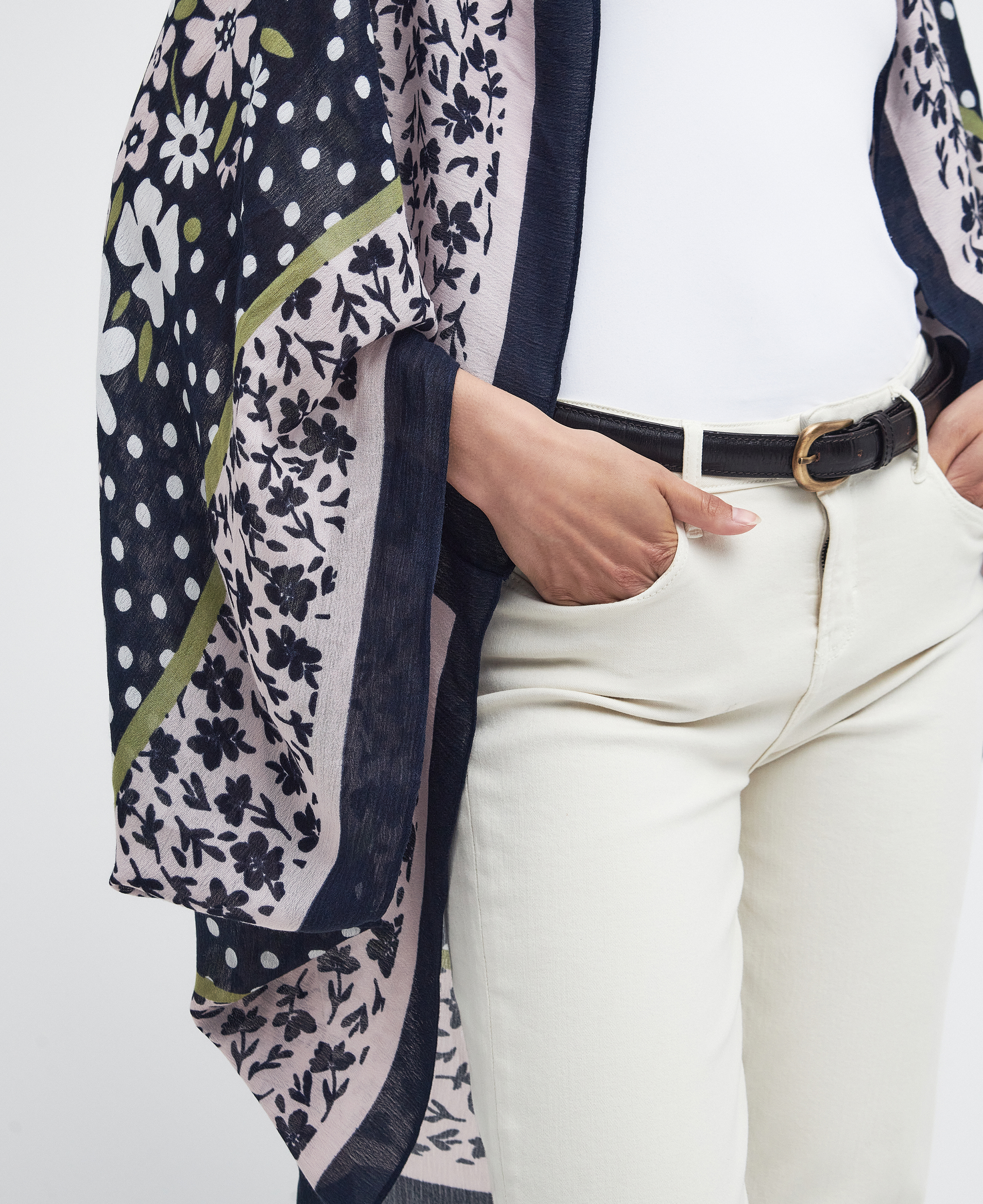 Ajoutez une touche d'inspiration bohème à vos accessoires quotidiens avec la cape Harewood de Barbour. Cette cape légère est ornée d'un patchwork floral audacieux sur toute sa surface, ce qui ne manquera pas d'ajouter une touche d'imprimé à votre garde-robe.