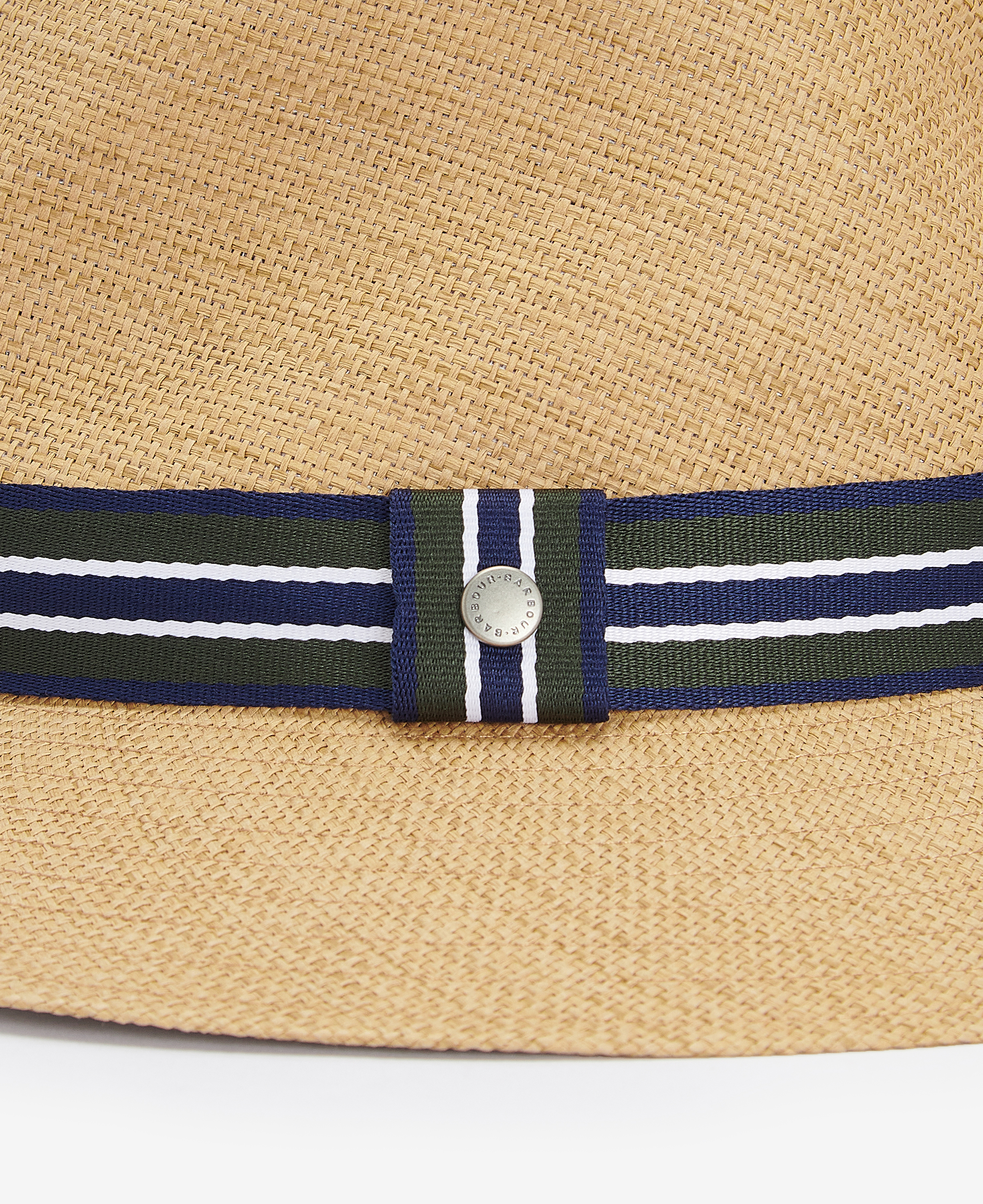 Parfait pour les mois les plus chauds, ce trilby tissé est agrémenté d'un bandeau rayé en gros-grain pour une touche d'élégance, et se termine par un subtil clou de marque Barbour.