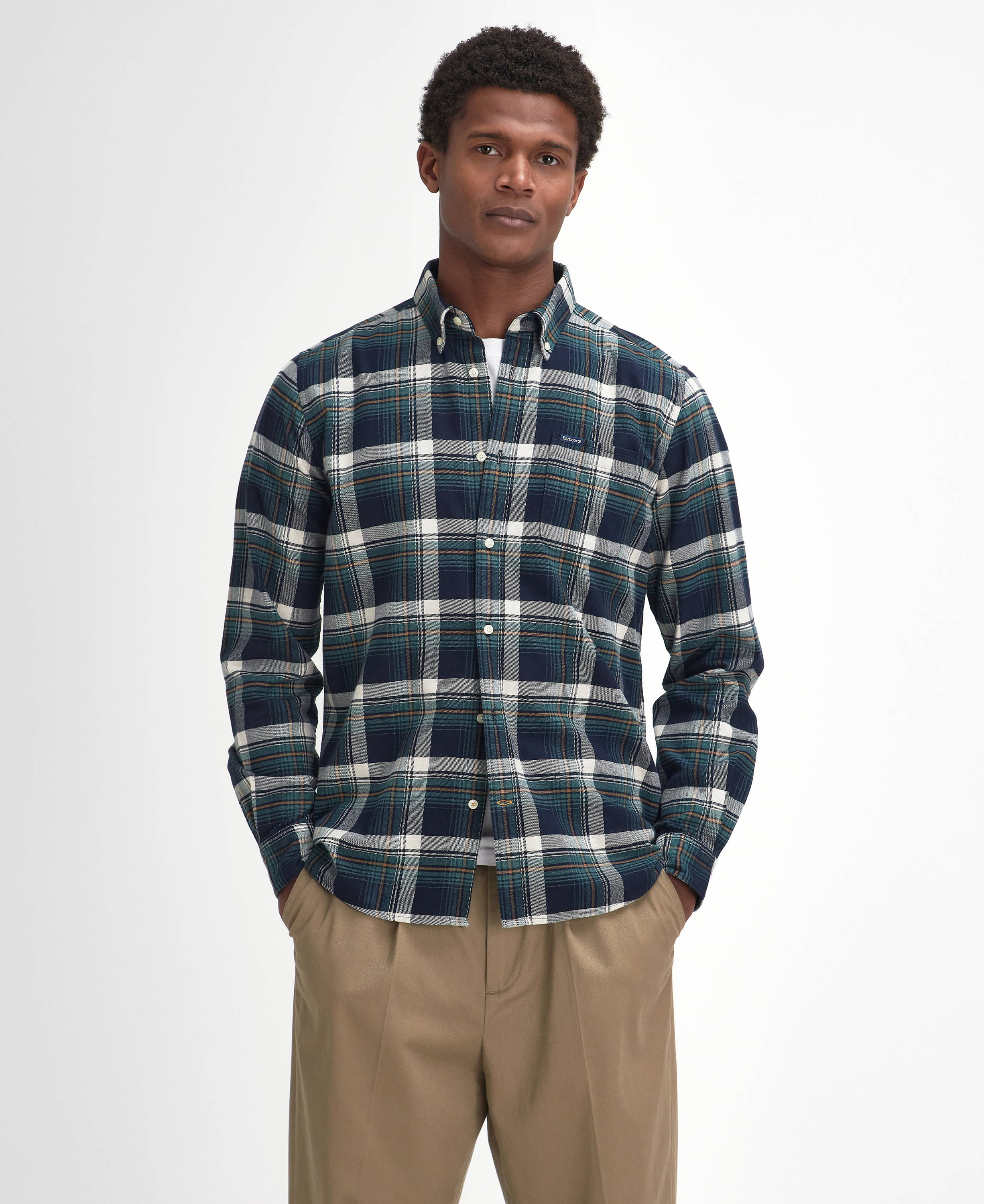 La chemise ajustée Barbour Shieldton présente une coupe légèrement plus ajustée au niveau de la taille et des manches, créant un look plus épuré qui convient parfaitement aux journées décontractées. Confectionnée en coton respirant avec une finition brossée des deux côtés, cette chemise classique est aussi confortable qu'élégante grâce à l'étiquette de la marque sur la poitrine.