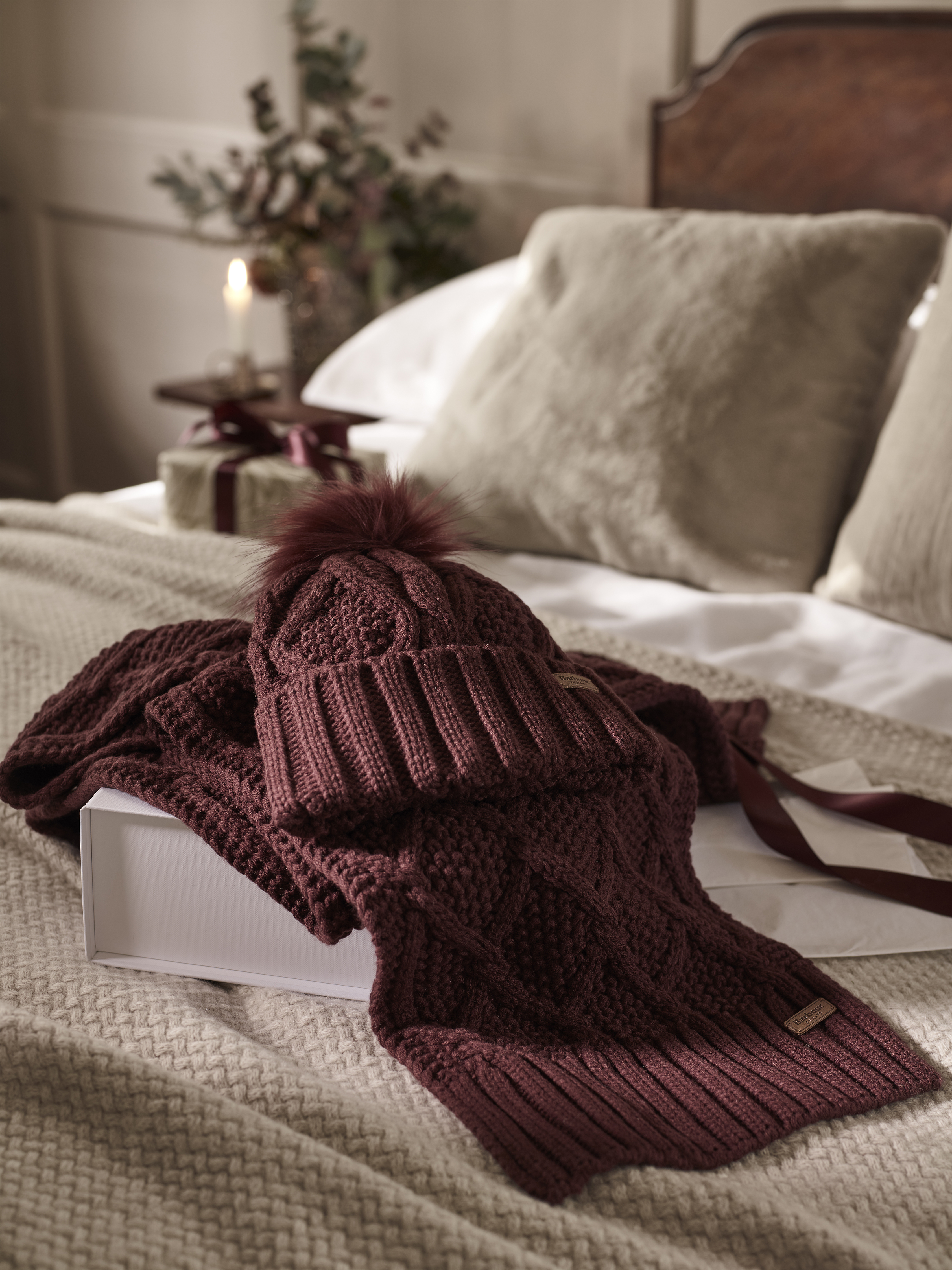 Coffret Cadeau Bonnet et Echarpe Barbour Ridley Cabernet