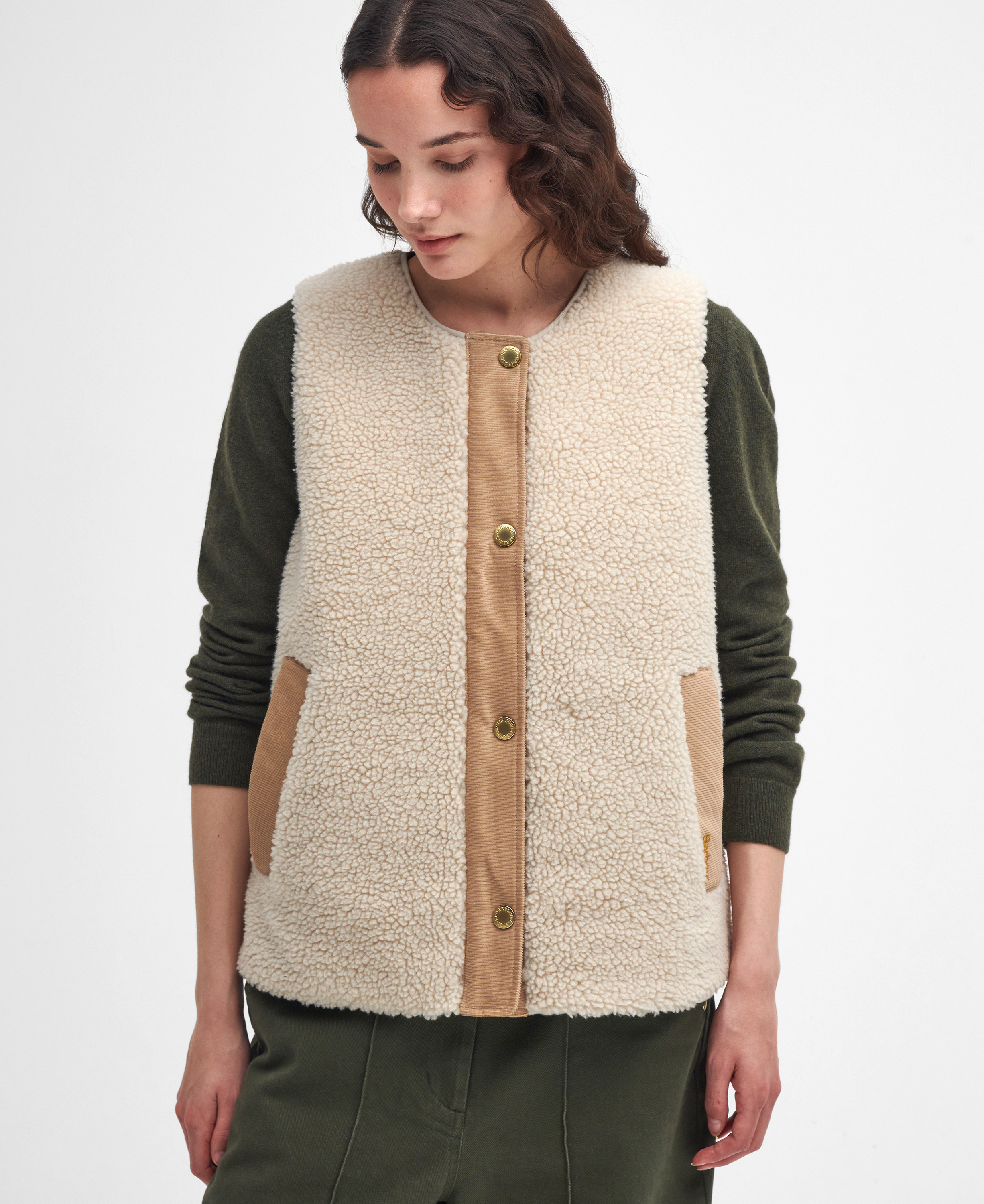 Que vous soyez à la recherche d'une chaleur optimale ou d'une tenue douillette, la doublure Dulsie de Barbour est le choix idéal. Confectionné dans une fourrure de nounours somptueusement douce, ce modèle est parfait pour être superposé à des T-shirts et des pulls au fil des saisons et pour être associé à des vestes pour plus de chaleur, grâce à son design discret sans col.