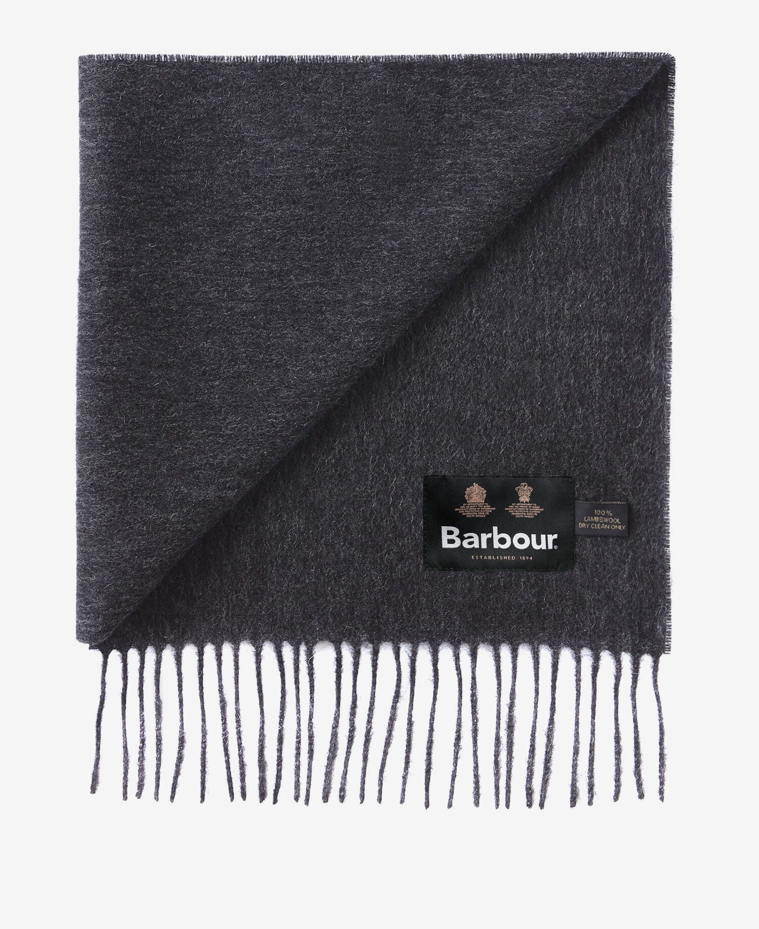 Confectionnée en laine d'agneau somptueusement douce, cette écharpe douillette est ornée d'un bord traditionnel à franges et de la broderie Barbour Shield.