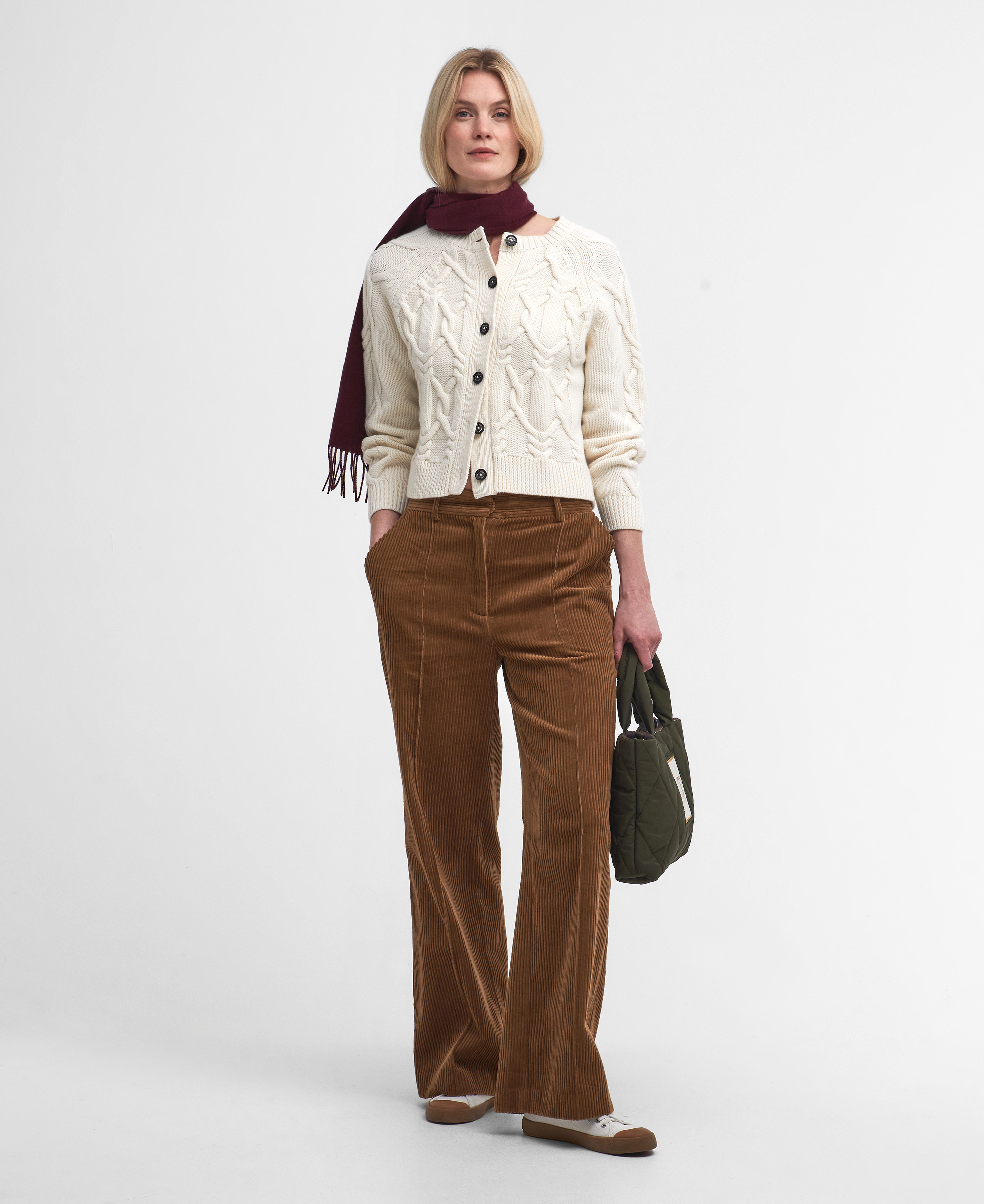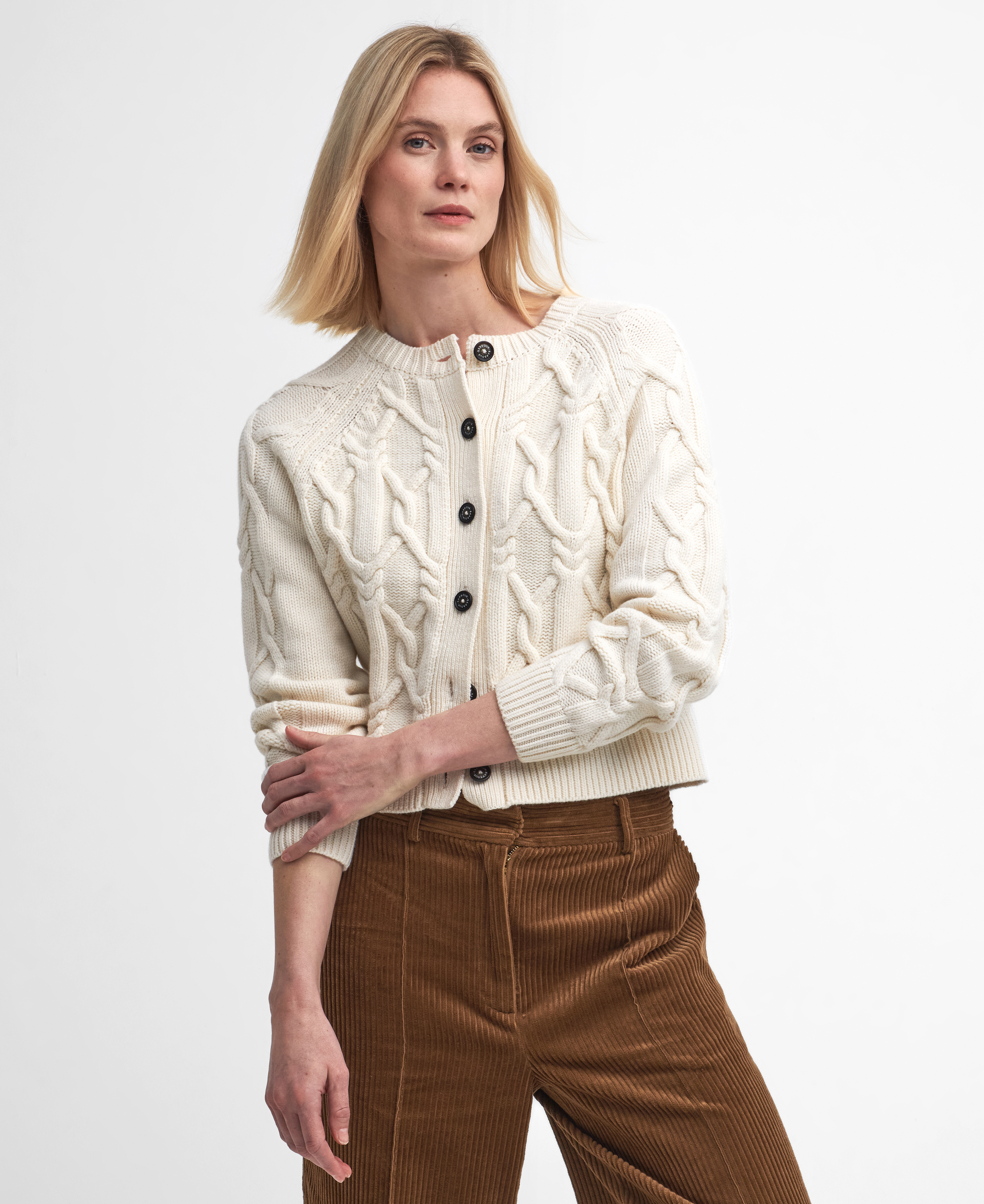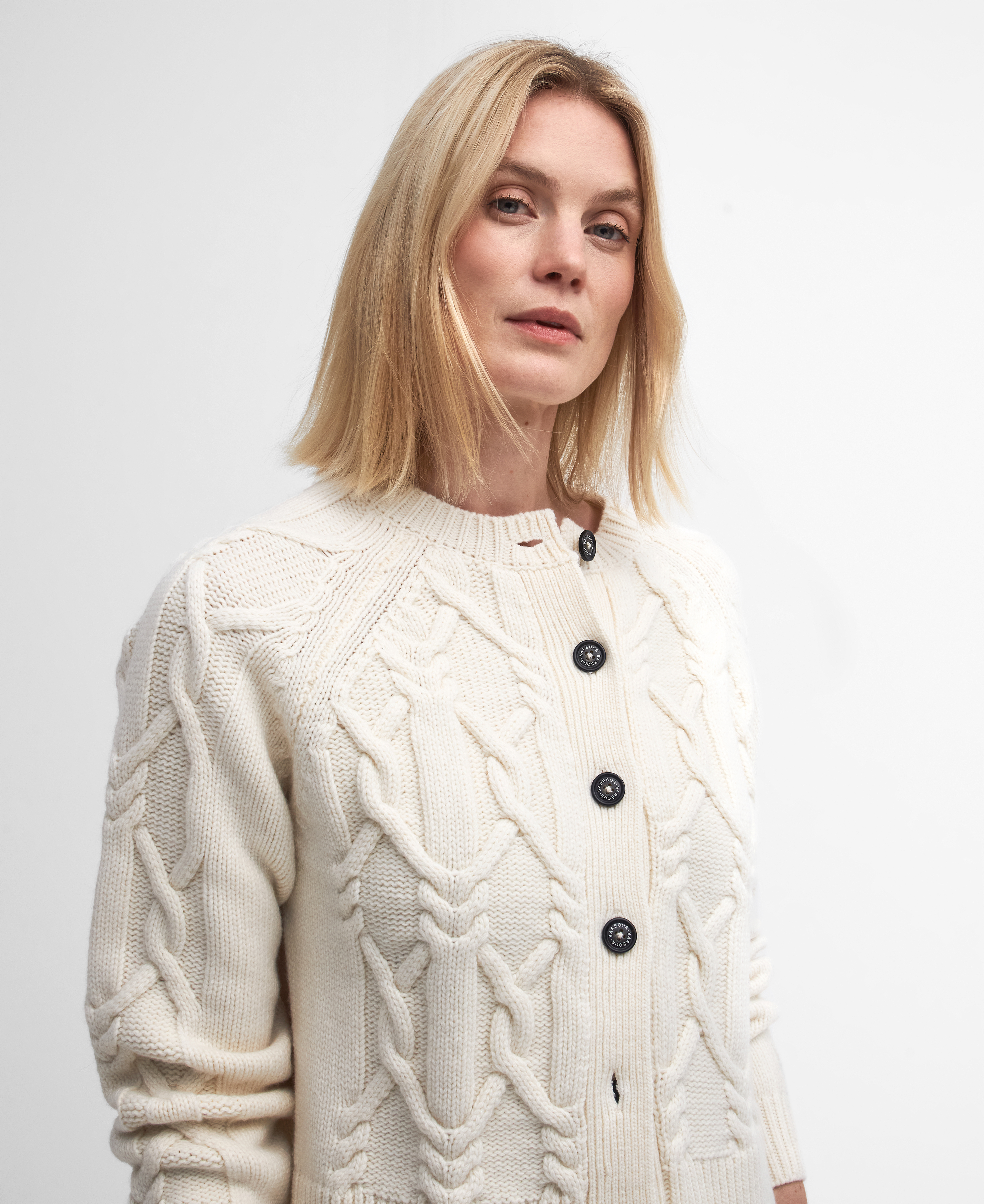 Si vous avez prévu de passer un week-end à la campagne, le cardigan Lorelei de Barbour est le vêtement en maille idéal pour vous accompagner dans vos aventures. Fabriqué à partir d'un mélange de laine, ce modèle en grosse maille torsadée offre un attrait preppy mais intemporel à votre sélection de tricots