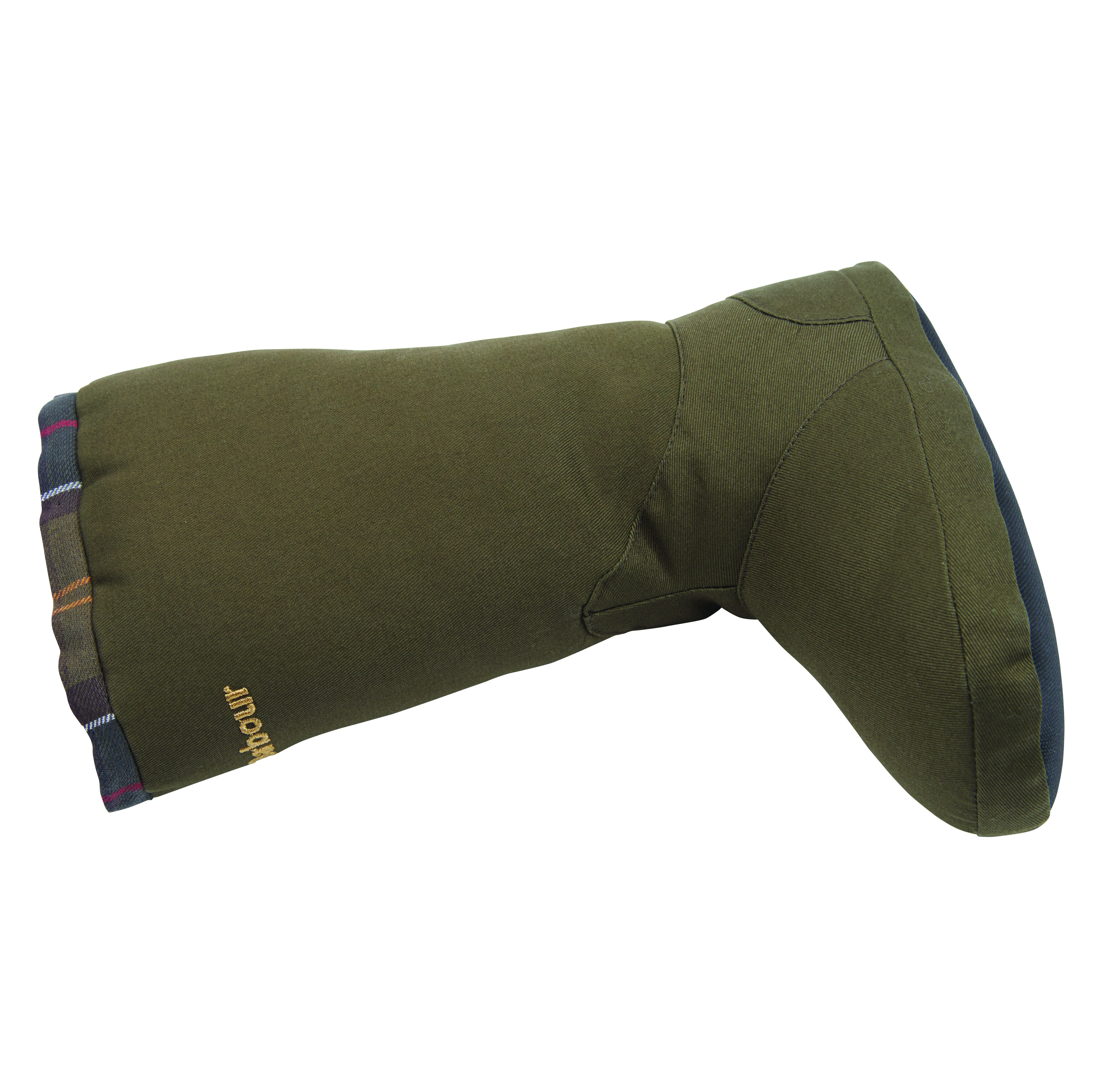 Jouet en forme de botte Wellington Barbour iconique, avec couineur et garni du tartan Barbour.
