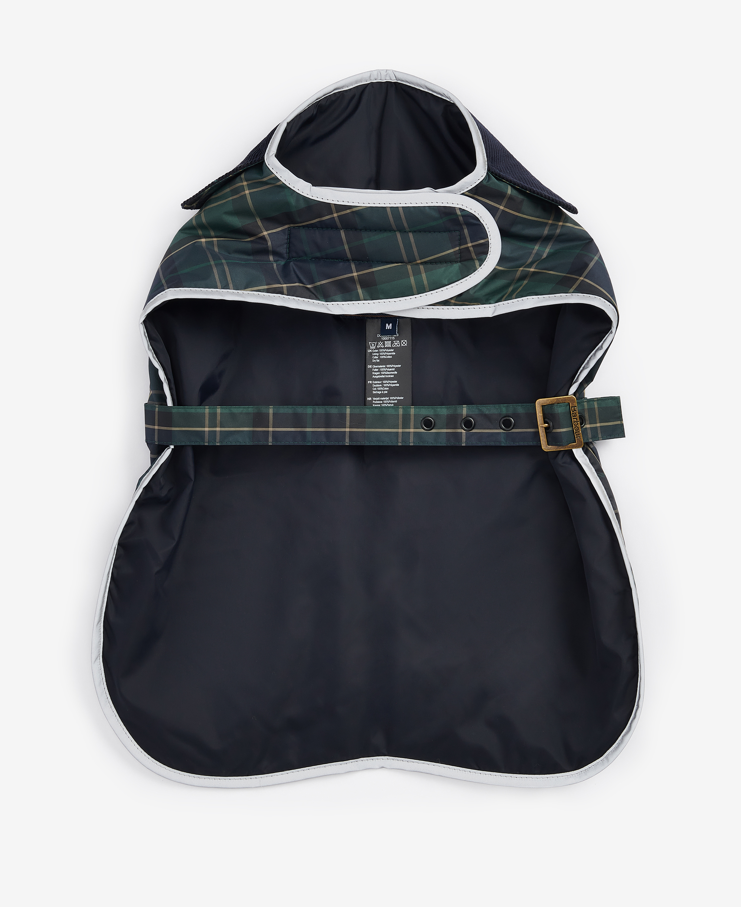 Le manteau pour chien Barbour Wetherham Tartan présente un design léger et imperméable dans un tartan intégral. Doté d'un col contrasté, ce manteau offre une sangle de taille réglable et un trou pour harnais pour attacher une laisse.