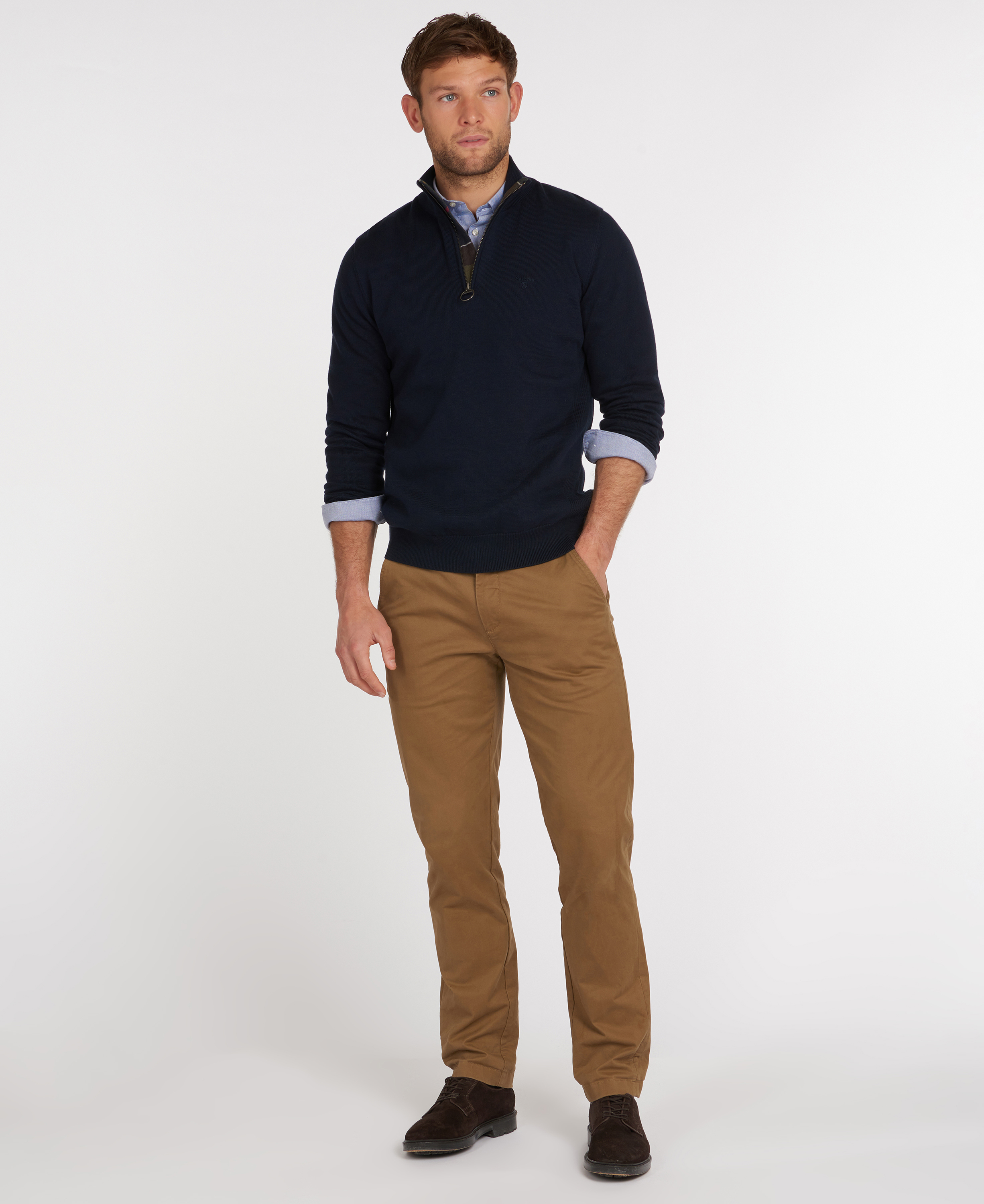 Le pull Barbour Cotton Half Zip est polyvalent, ornée de tartan classique sur la patte intérieure, il est proposé dans une coupe épurée. Orné de l'anneau signature et d'un logo ton sur ton brodé sur la poitrine.