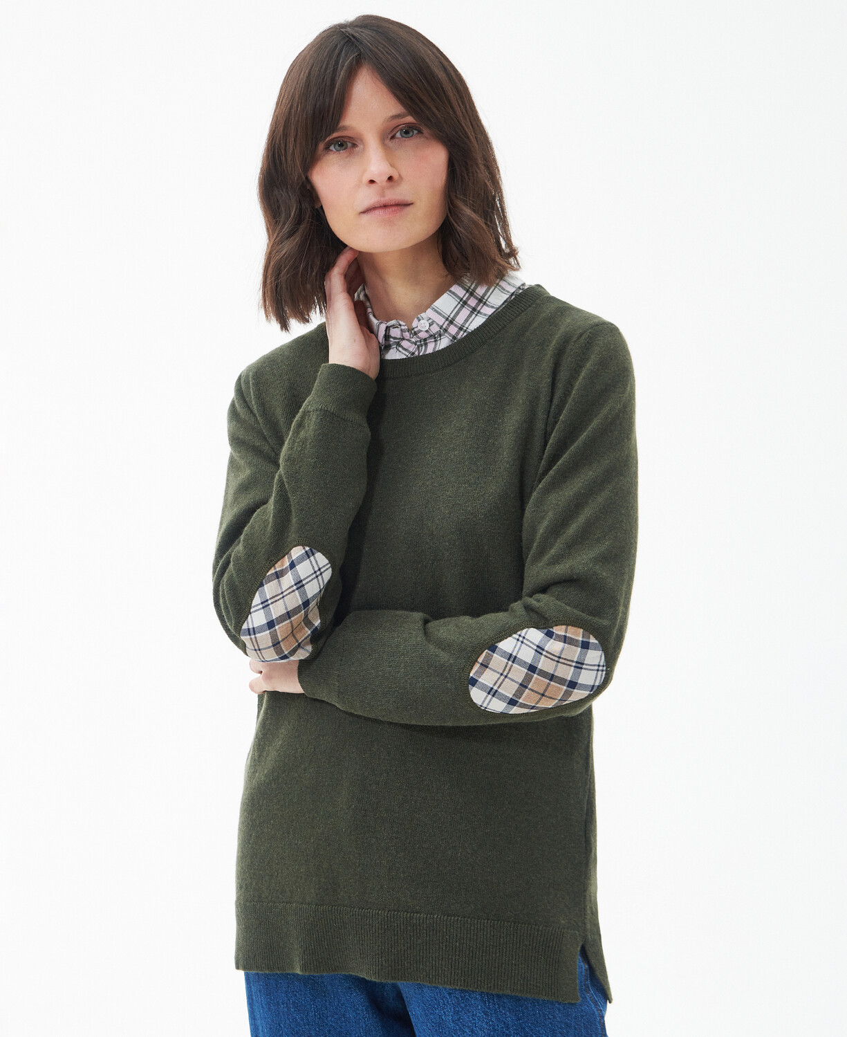 De coupe régulière, le sweat-shirt Barbour Pendle présente un col ras du cou, des manches longues et des bordures côtelées. Ce vêtement chaud et confortable est imaginé dans un doux mélange de laine et de coton, et il est fini avec du tartan à l'encolure arrière et des patchs aux coudes.