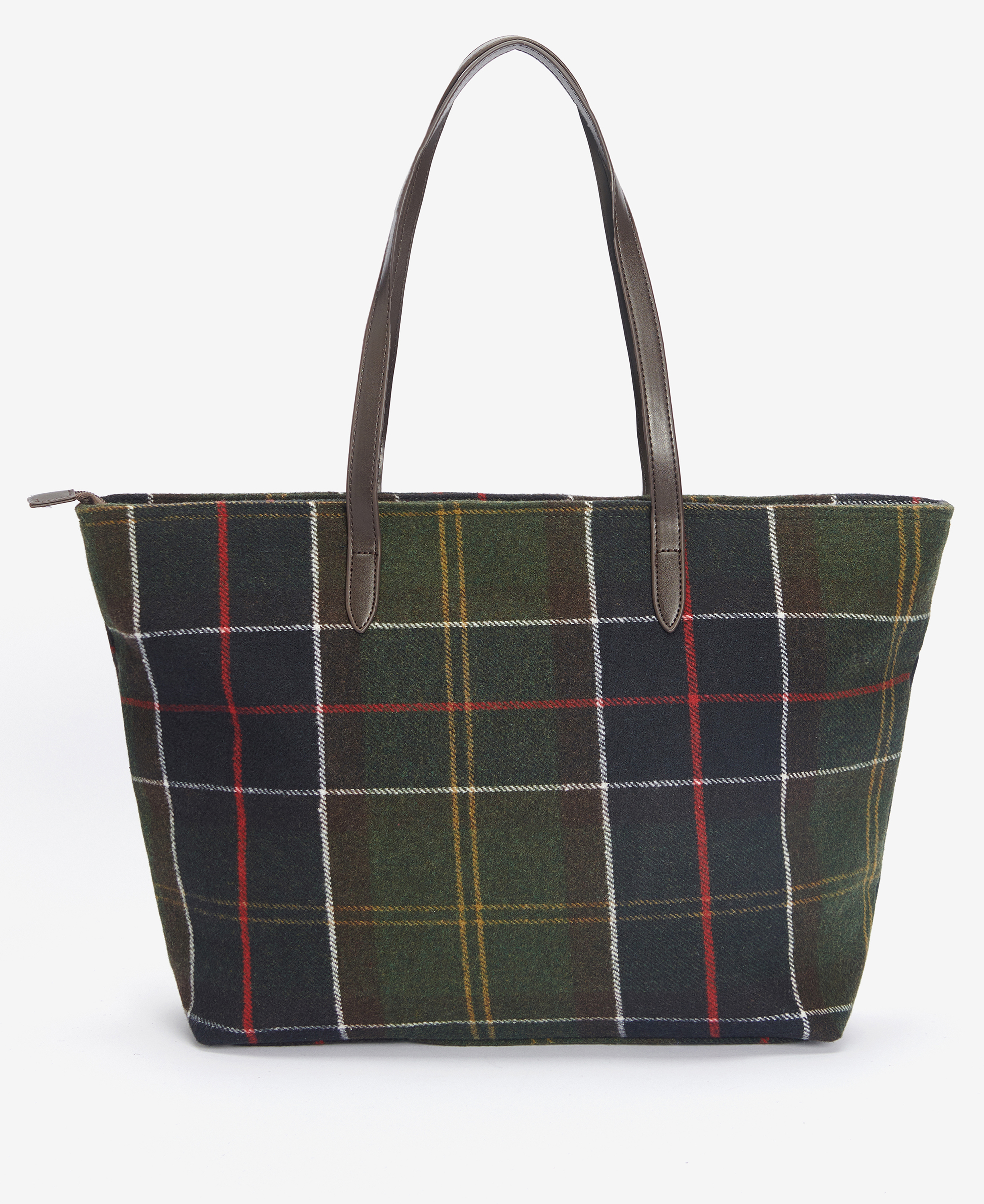 Ce sac fourre-tout polyvalent est fabriqué avec un extérieur en tartan Barbour et des bretelles en similicuir. Il s'ouvre avec une fermeture éclair pour révéler un compartiment principal généreux avec une poche intérieure pour les objets de valeur et une pochette amovible séparée. Ce sac élégant est orné d'un badge en cuir gaufré sur le devant extérieur.