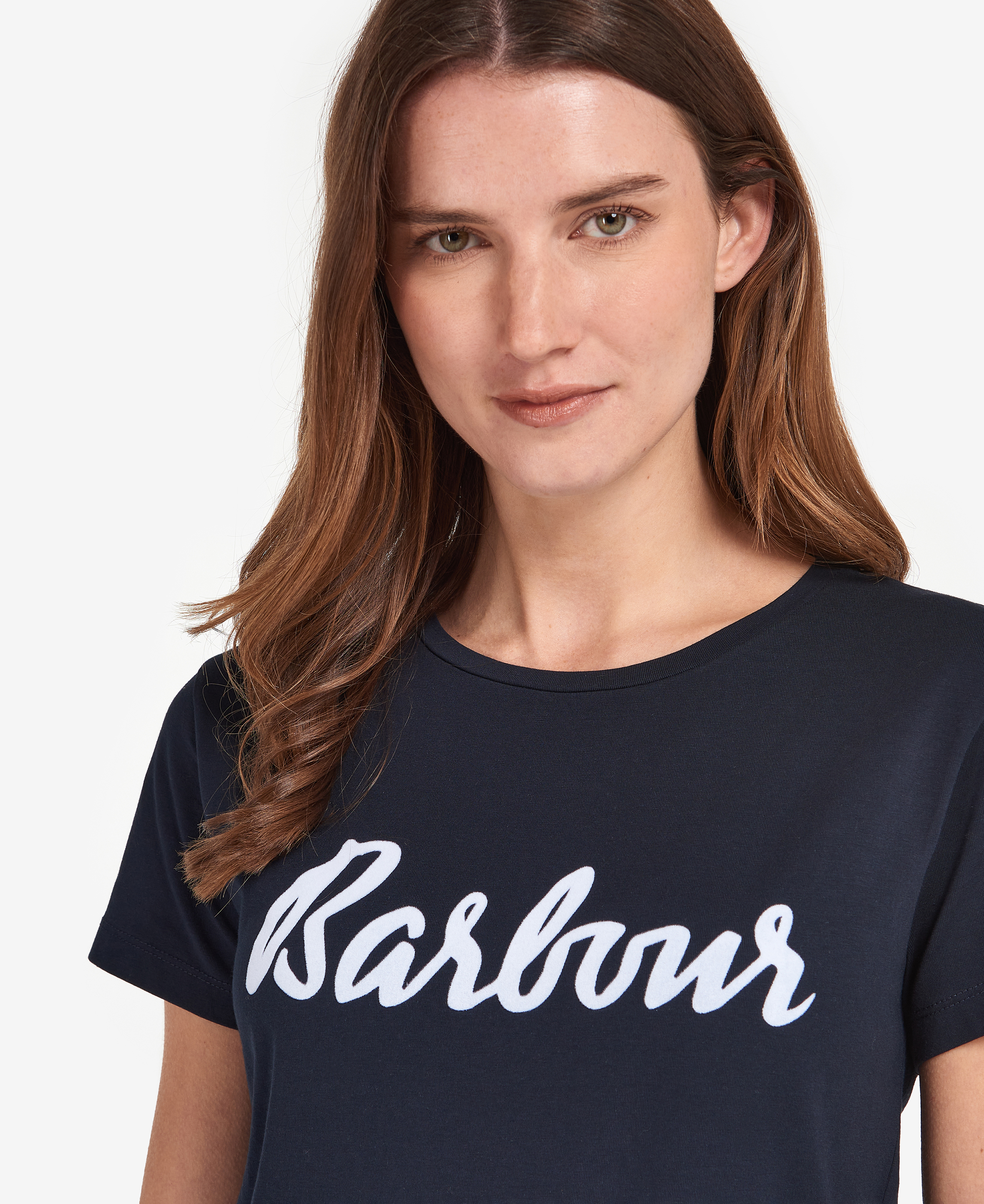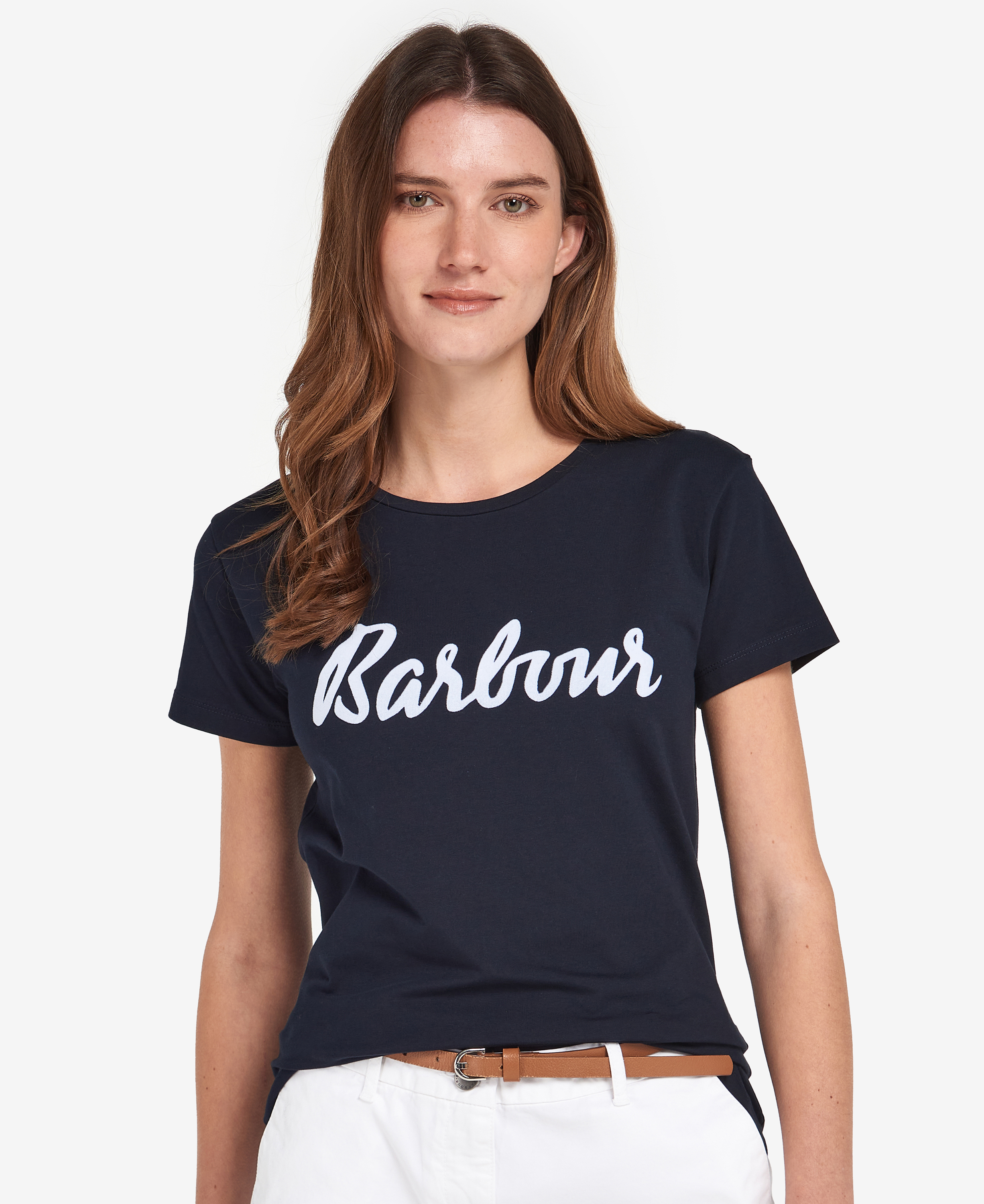 Un t-shirt classique est toujours une bonne option pour les looks décontractés. Ce vêtement en coton mélangé doux et léger est doté de manches courtes, d'une encolure ras du cou et d'un imprimé Barbour sur la poitrine.
