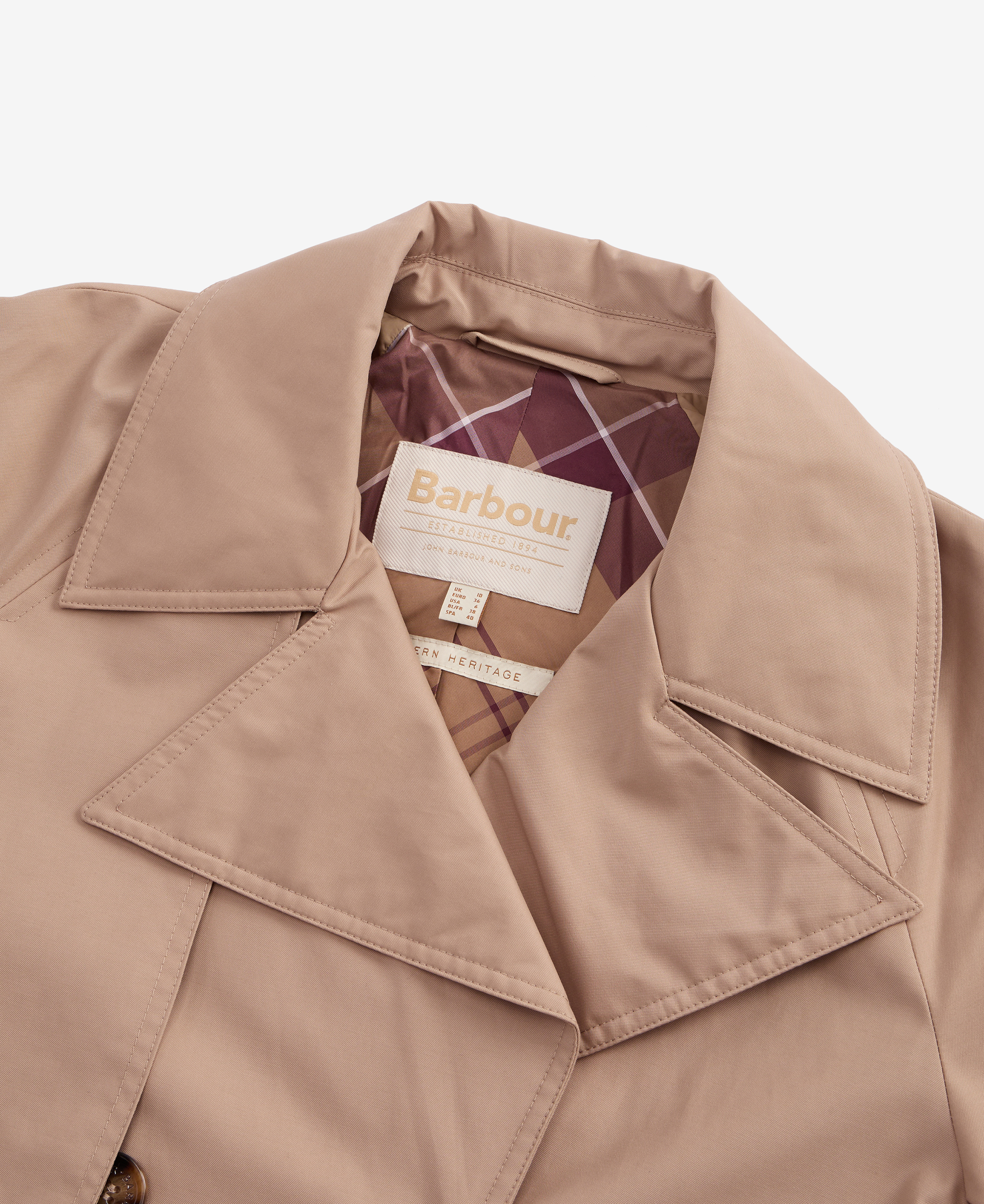 Le trench-coat Gwyn de Barbour est un vêtement d'extérieur élégant, imaginé dans un tissu imperméable mat et coupé de manière décontractée pour offrir une protection supplémentaire contre les éléments lorsque les prévisions sont imprévisibles. Cette nouvelle silhouette à double boutonnage offre un aspect et une sensation de qualité supérieure, fusionnant des touches modernes avec des détails traditionnels tels que la taille ceinturée, les manches à poignets et les poches passepoilées.