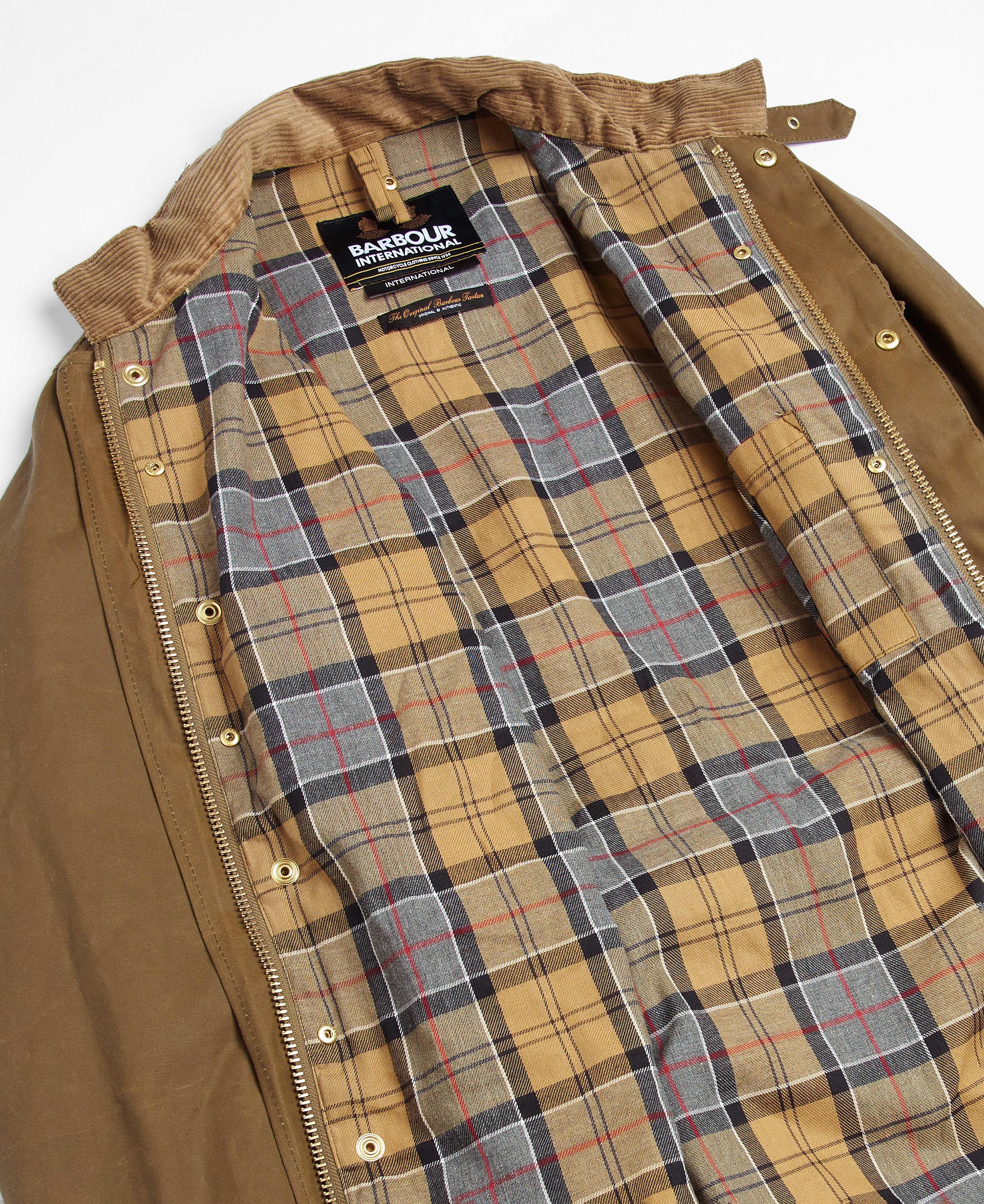 Fidèle à cet héritage, l'International Original est fabriqué dans un coton ciré lourd Sylkoil de 8 onces, offrant une finition mate élégante et une protection pour la route. La doublure en coton léger porte le tartan de Barbour et est cloutée pour pouvoir adapter la doublure "Warm Pile" en option, pour plus de chaleur.
