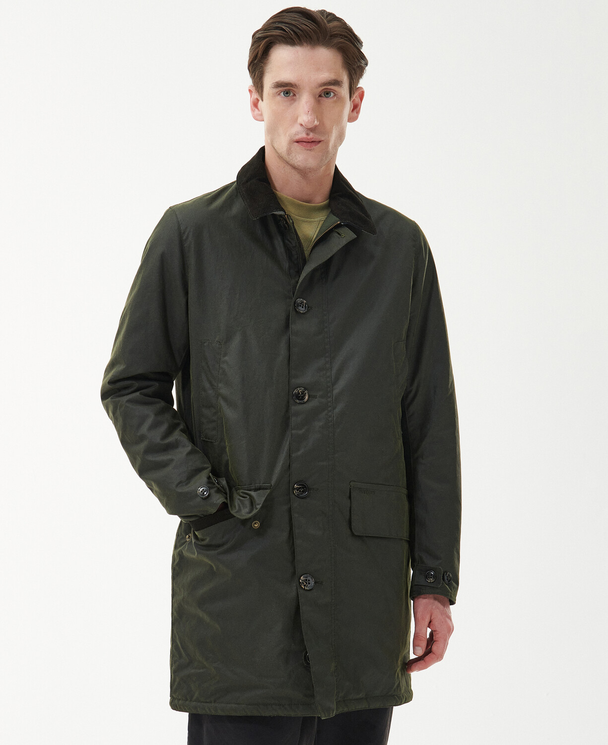 Le Wax Mac de Barbour est un vêtement d'extérieur étonnant, doté d'un empiècement écossais au dos et d'une doublure matelassée pour une protection de luxe. Le col en corde ajoute une sophistication subtile au vêtement et les poignets à boutons réglables garantissent un port confortable. Des poches chauffe-mains et des poches passepoilées à rabat se trouvent au bas du vêtement pour une finition à la fois pratique et élégante.