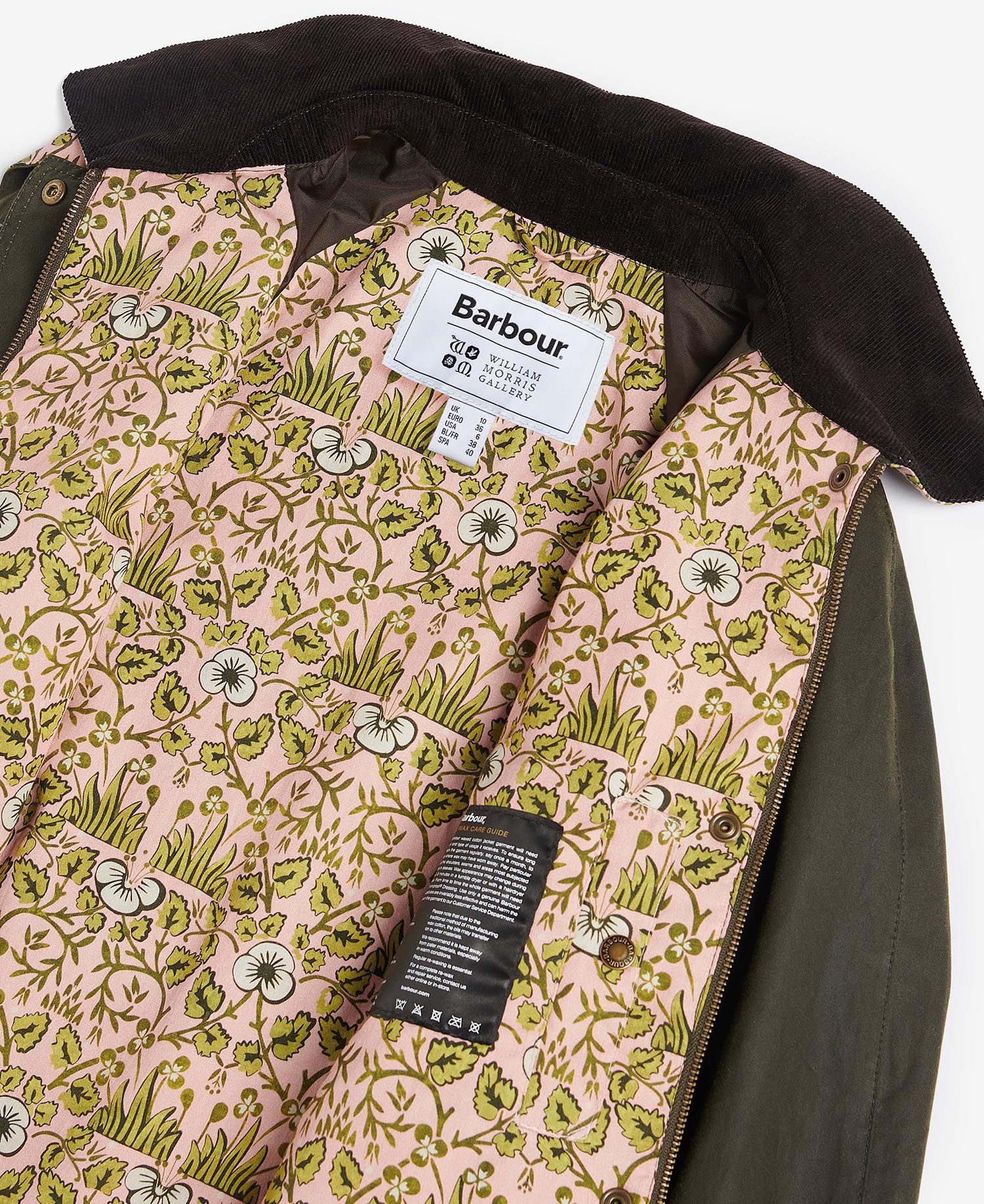 Veste Wax Barbour x Barbour x William Morris Gallery Shelton Olive