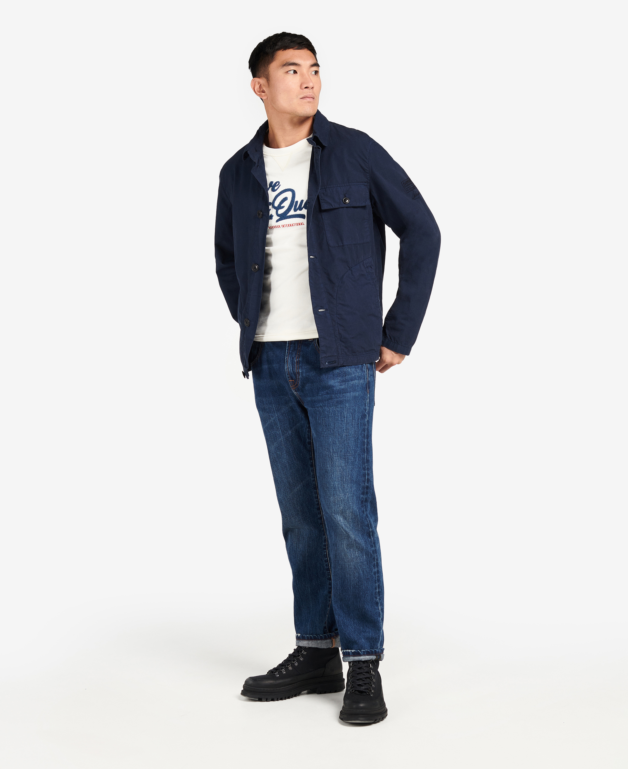 Sortez en plein air dans un style intemporel avec la veste décontractée Barbour International McQueen Terrance Chore pour homme. Elle comprend des poches à bouton, ainsi que deux poches passepoilées inférieures. Les marques Steve McQueen et Barbour International figurent sur la manche gauche pour un subtile.