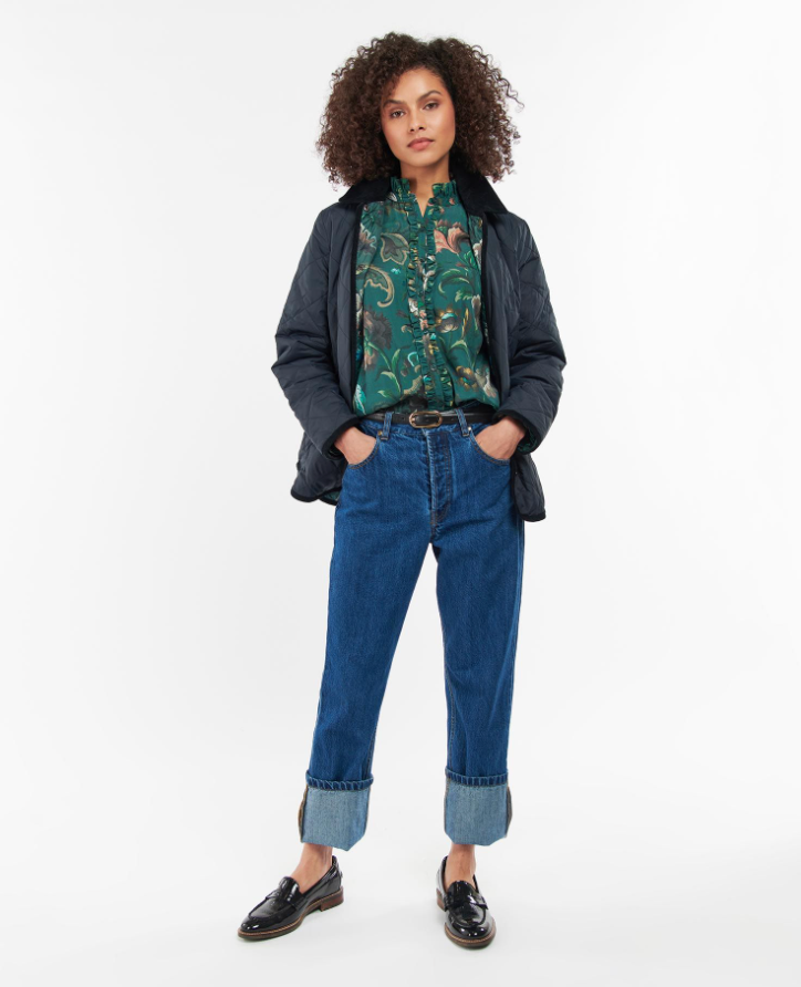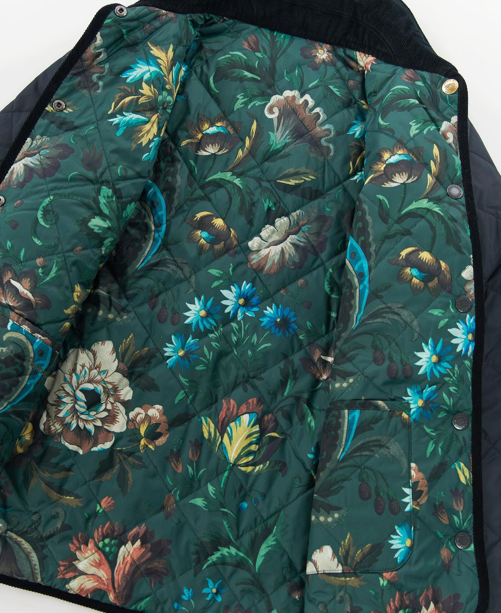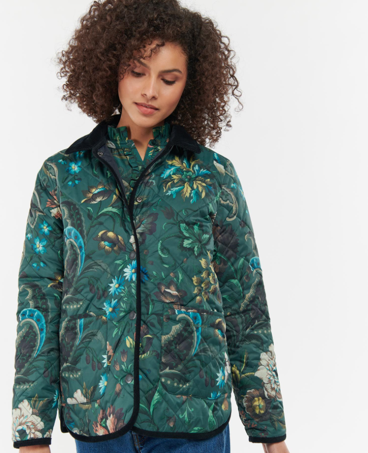 La veste matelassée réversible Foxley de Barbour x House of Hackney est un basique de style polyvalent, avec une option de couleur bloc d'un côté de la veste et un imprimé floral audacieux mais féminin de l'autre. Dotée d'un col en velours côtelé et de poches à soufflet inférieures, cette veste se ferme à l'avant par des boutons-pression et est terminée par un cordon de serrage.
